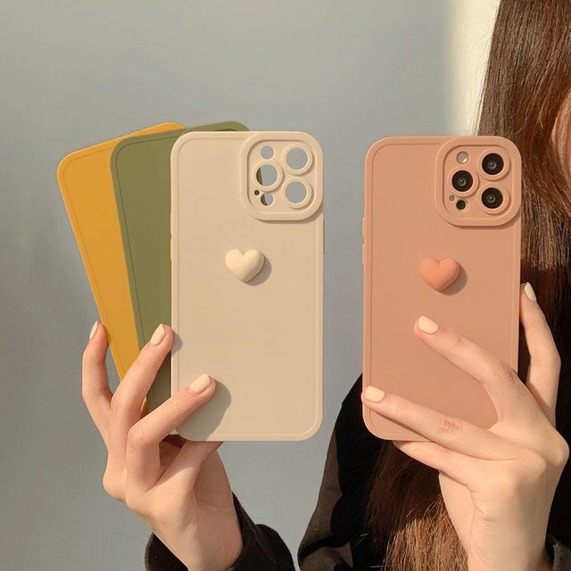 3D Love Heart Phone Case For iPhone 11 12 13 14 Pro Max X XR XS Max 7 8 Plus Soft Silicone Camera Protector Cover Case for Girl Fashion Cute Love-Heart Shape Silicone Case Shockproof Soft Back Cover Protective Case