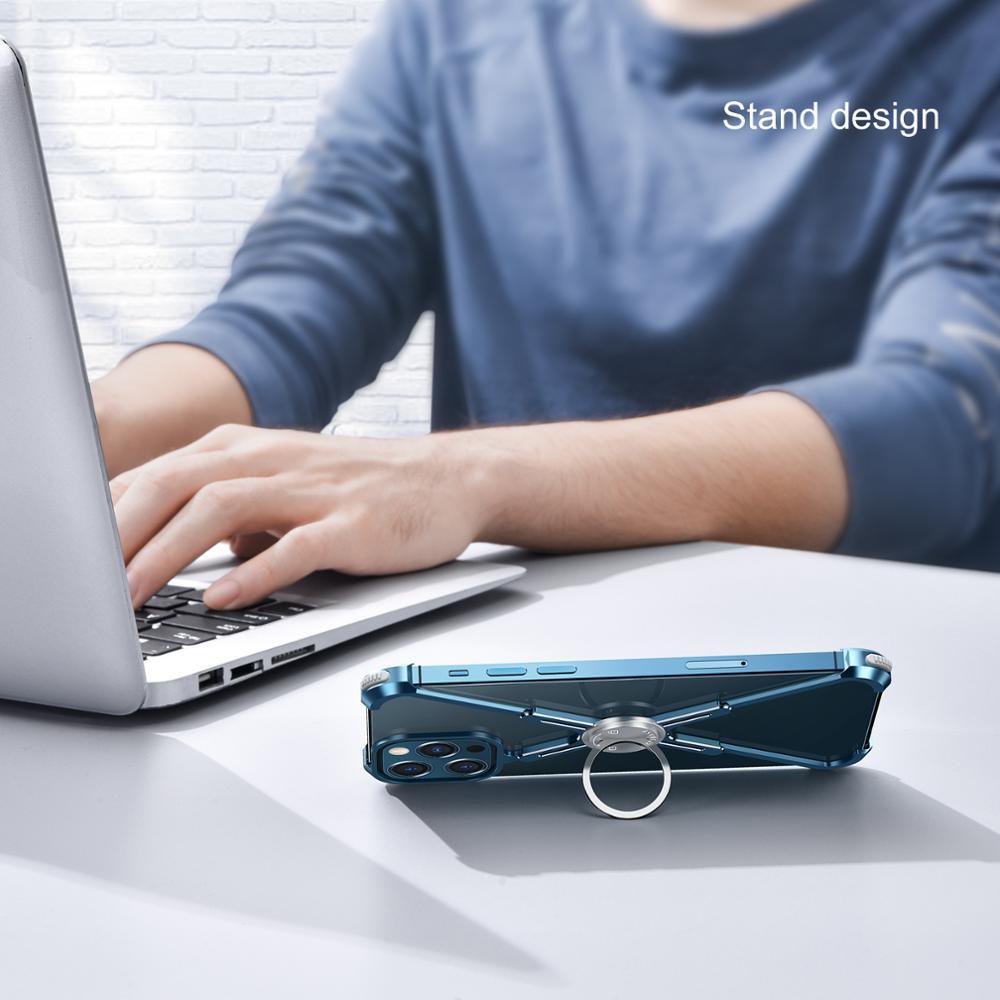 Luxury Phone Case For iPhone 12 Pro Metal Frame Shape Shockproof Cover Bumper Back Cool Case Aluminum Metal X-Frame Support Bumpers Compatible iPhone