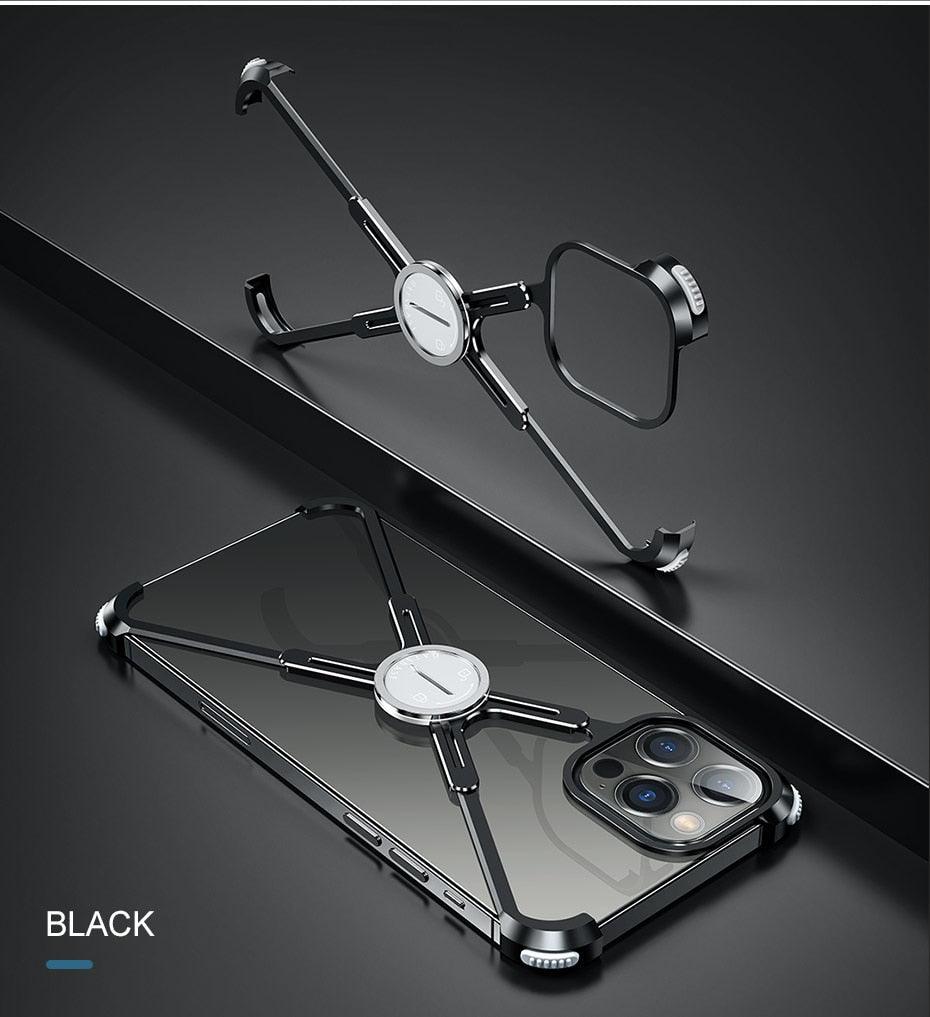 Luxury Phone Case For iPhone 12 Pro Metal Frame Shape Shockproof Cover Bumper Back Cool Case Aluminum Metal X-Frame Support Bumpers Compatible iPhone - Black / iPhone 12 Pro max is backordered and will ship as soon as it is back in stock.