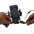 Easily charge your phone while riding with this inductive charging phone holder mount. Featuring ball articulating mounting technology, a 12 to 24 V DC input, and Qi inductive charging technology, this durable ABS mount holds and charges your phone.