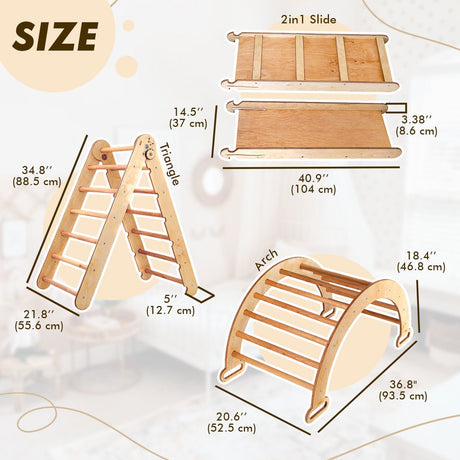 4in1 Montessori Climbing Set: Triangle Ladder + Climbing Arch + Slide Board + Art Addition