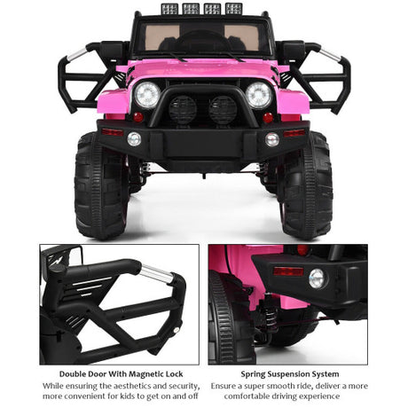 12V Kids Remote Control Riding Truck Car with LED Lights-Pink