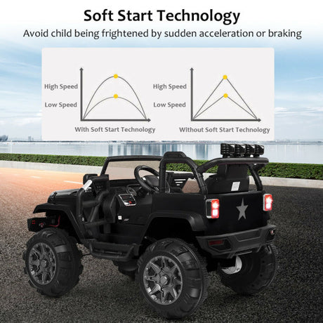 12V Kids Remote Control Riding Truck Car with LED Lights-Black