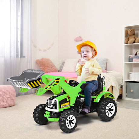12V Ride on Tractor with 3-Gear-Shift Ground Loader for Kids 3+ Years Old-Green