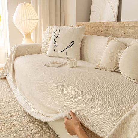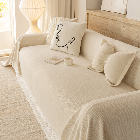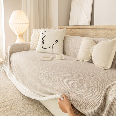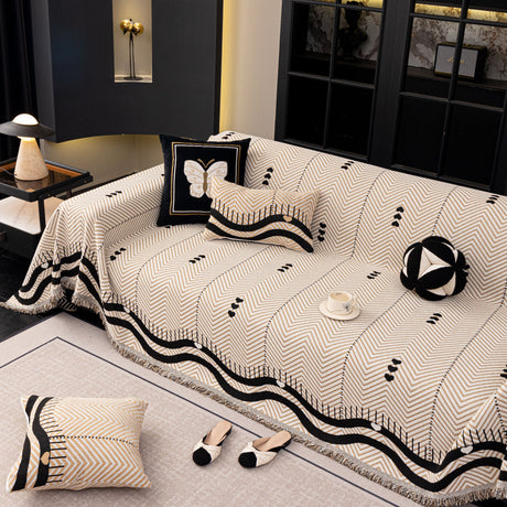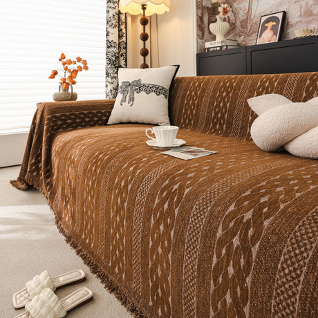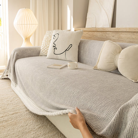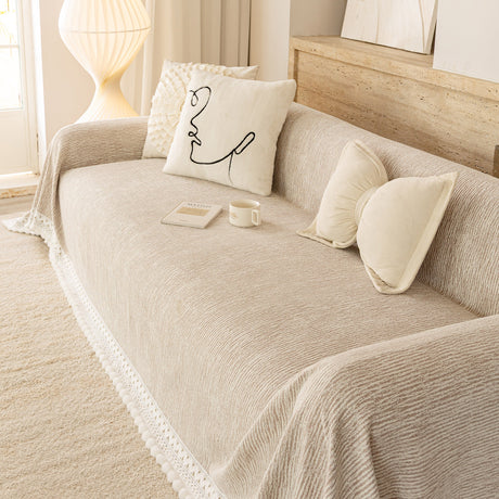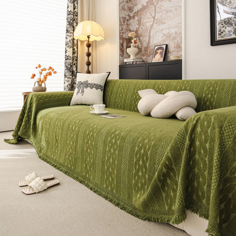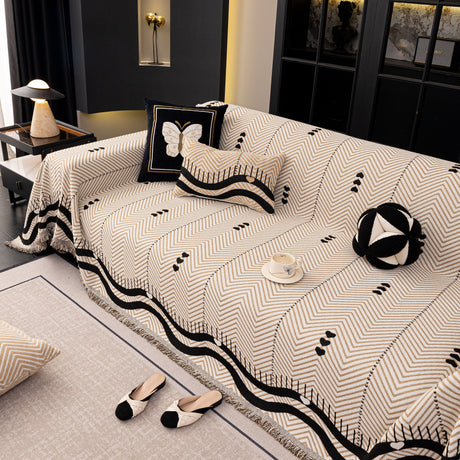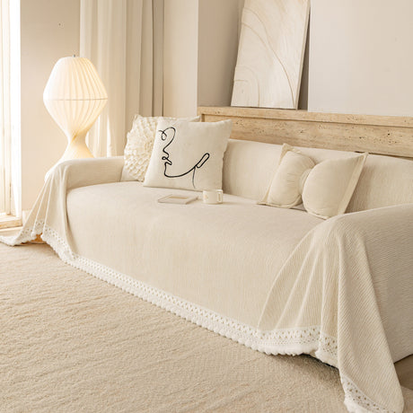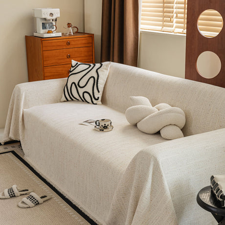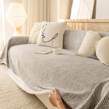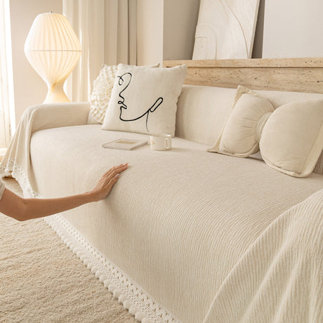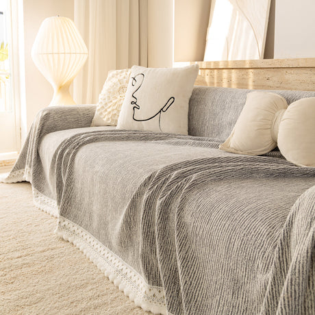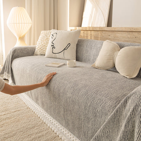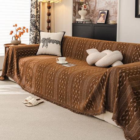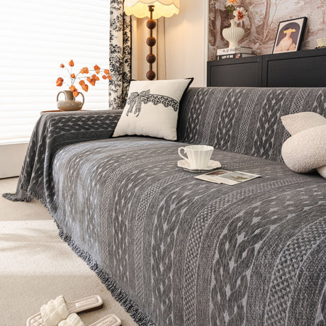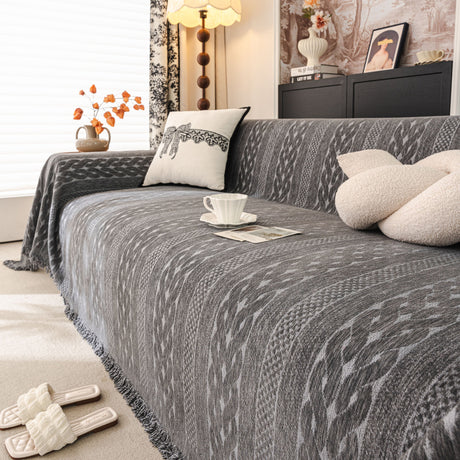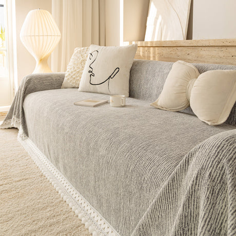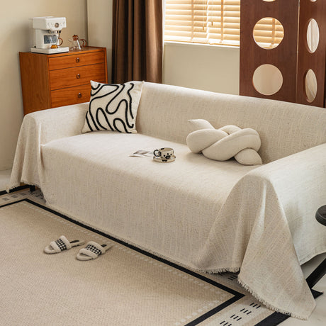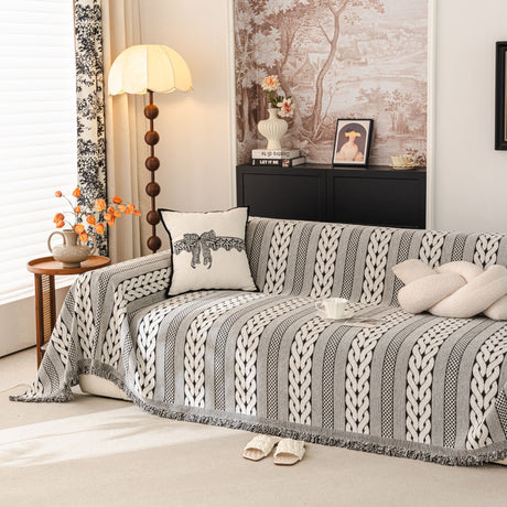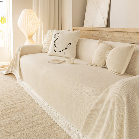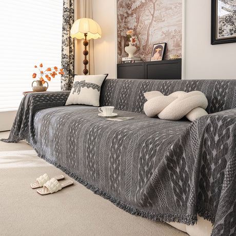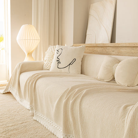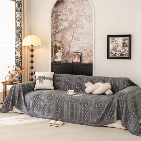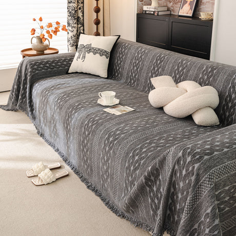 Sofa Cover Blanket Throw with Tassels, Decorative Furniture Protector for Dogs/Pets