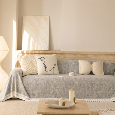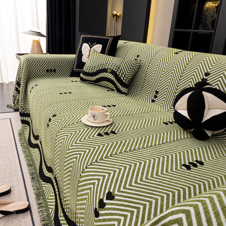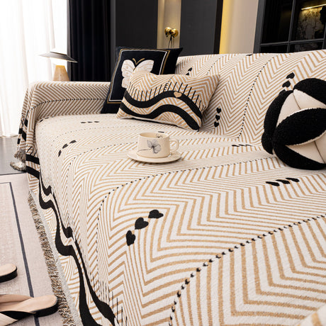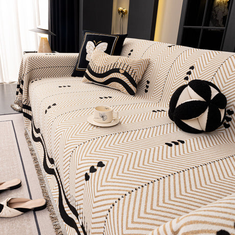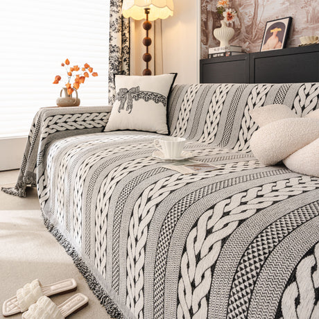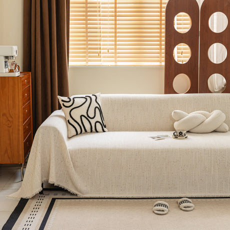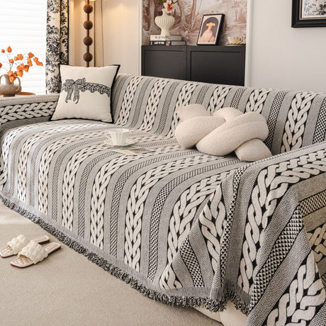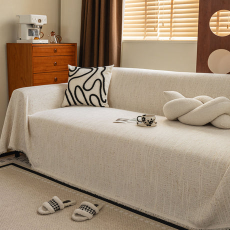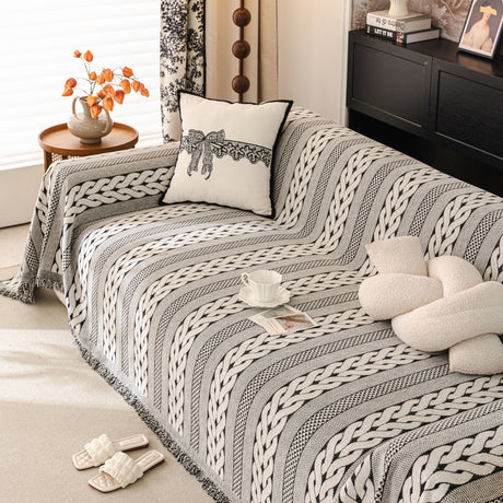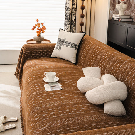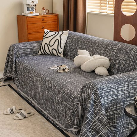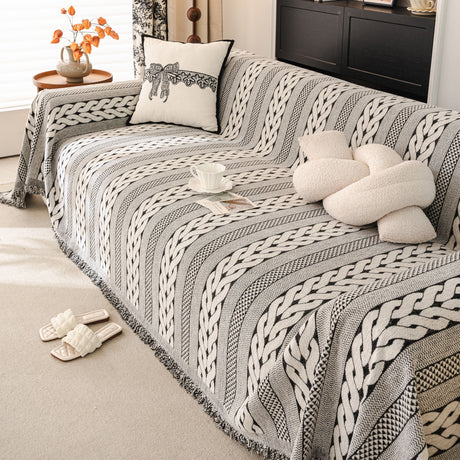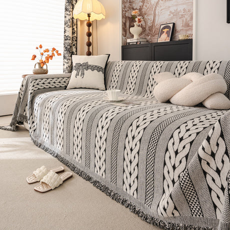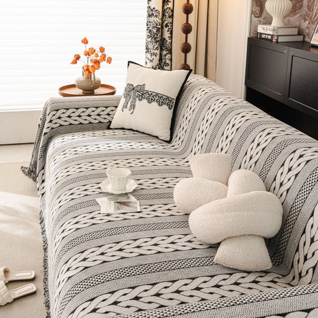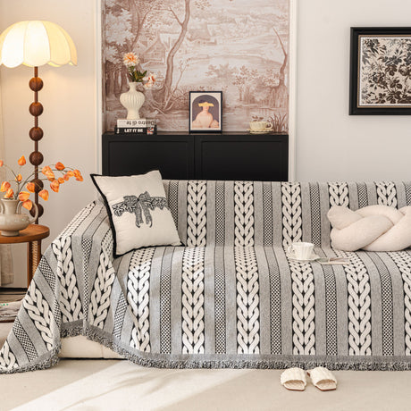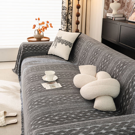 Boho Woven Sofa Throw Cover, Modern Soft Couch Protector for Pets & Living Room Decor