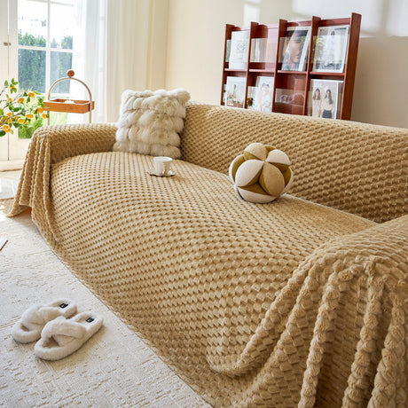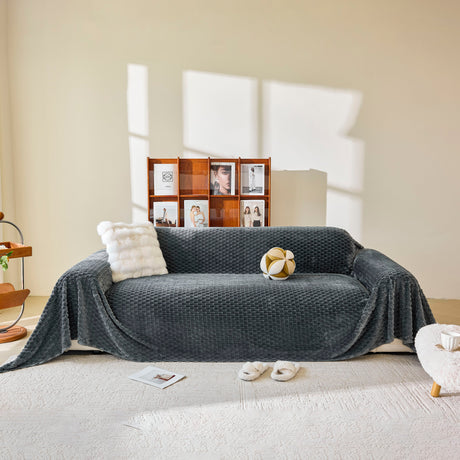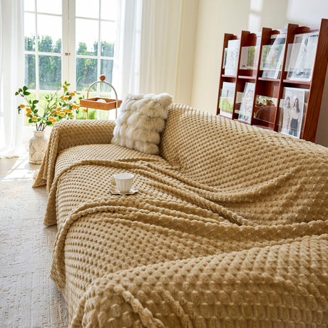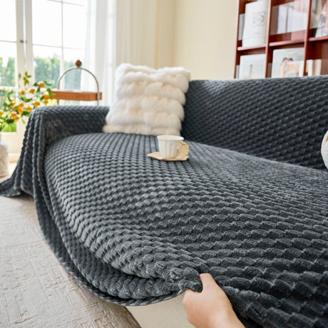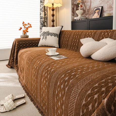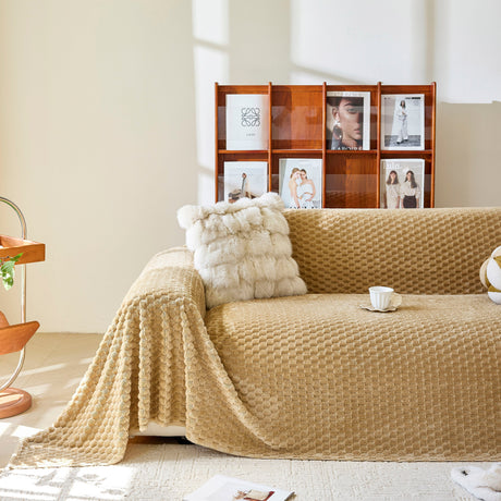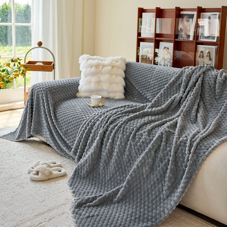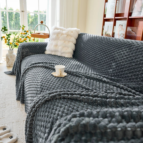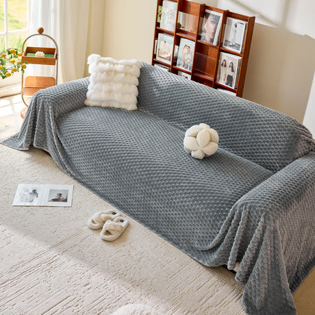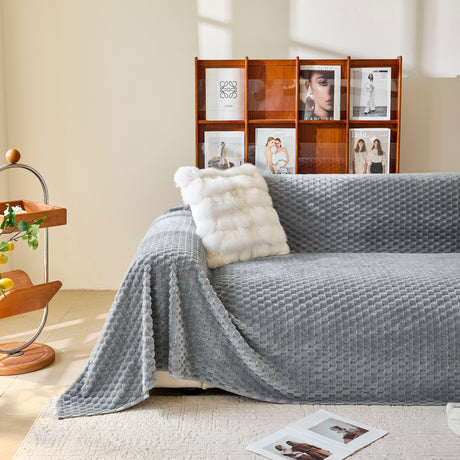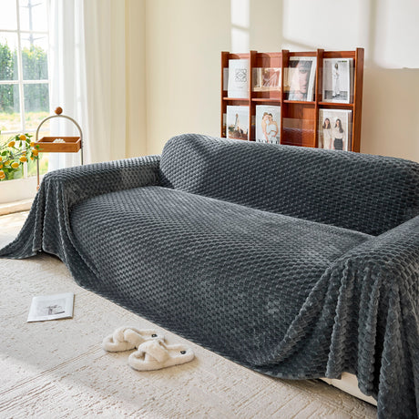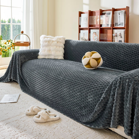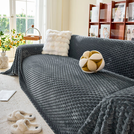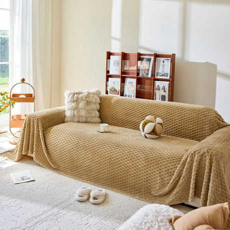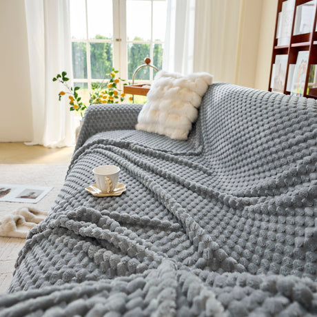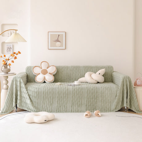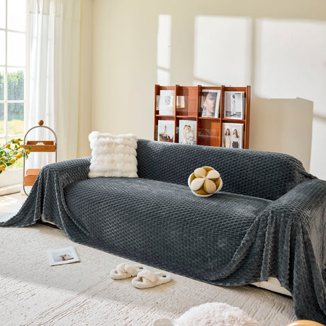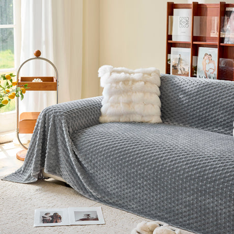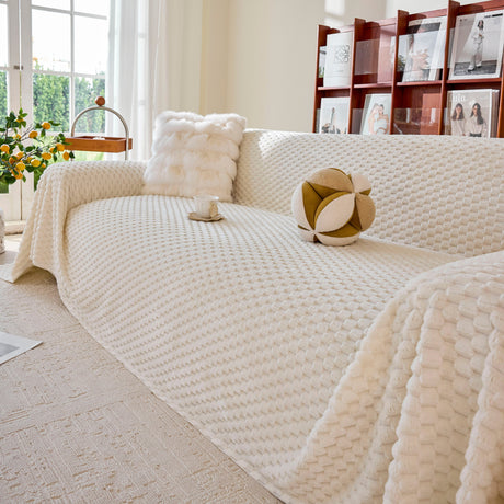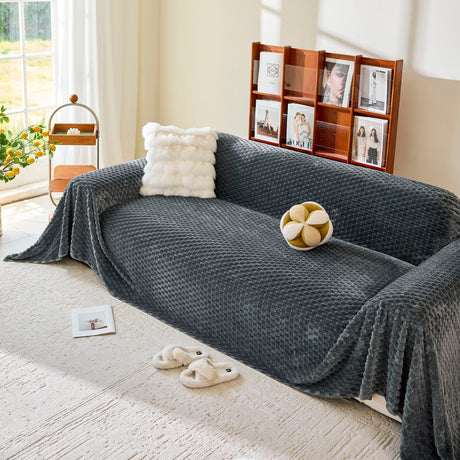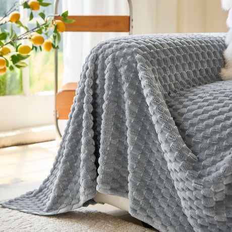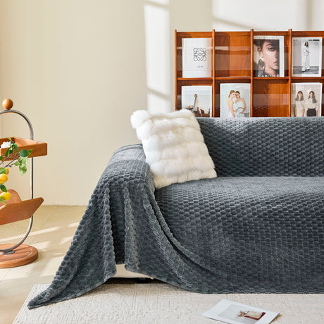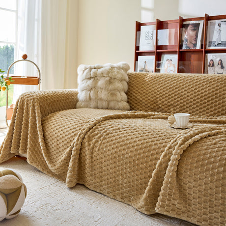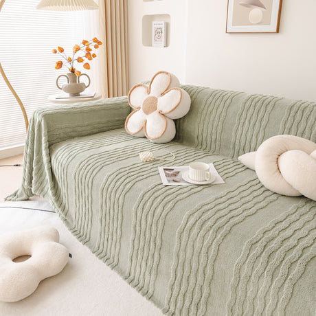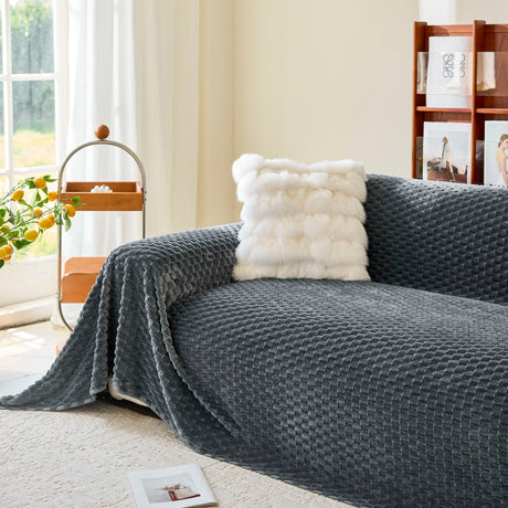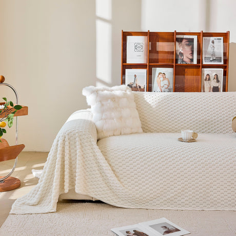 Decorative Plush Textured Woven Sofa Cover Throw, Cozy Soft Couch Protector Blanket