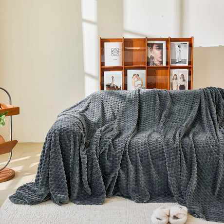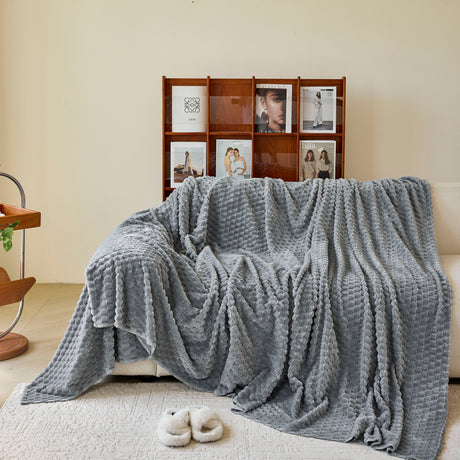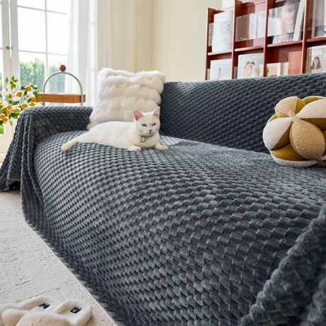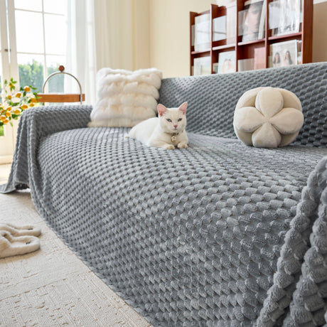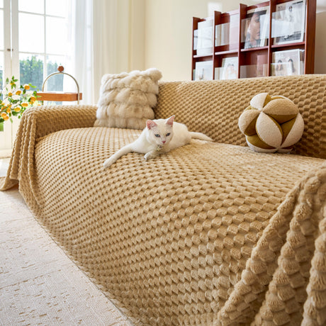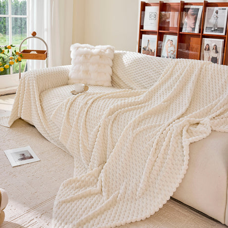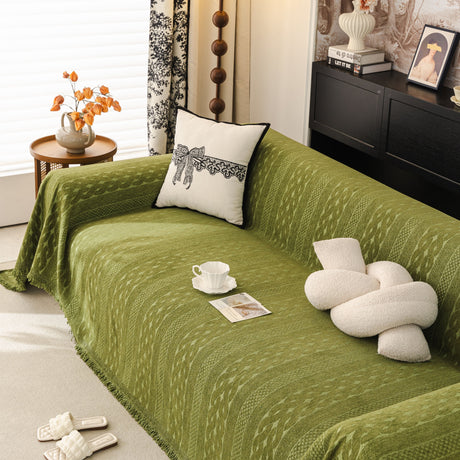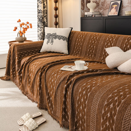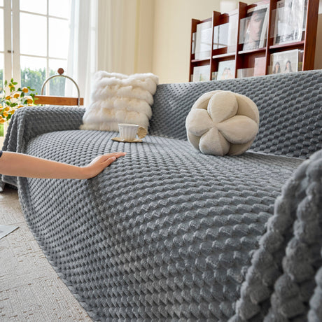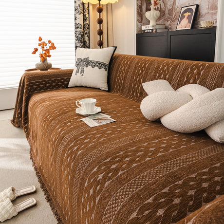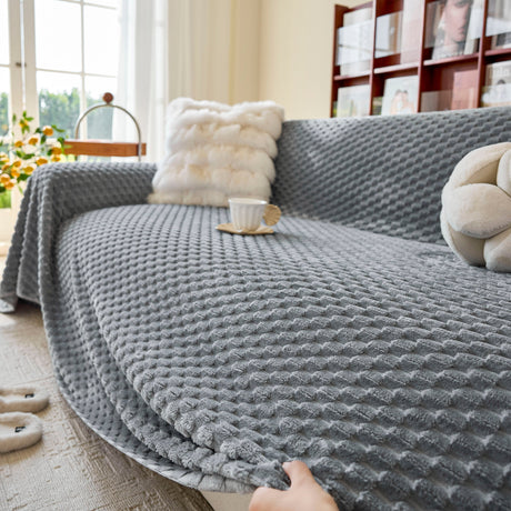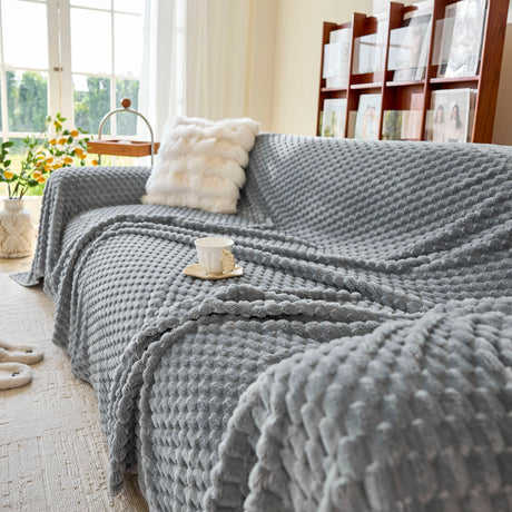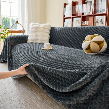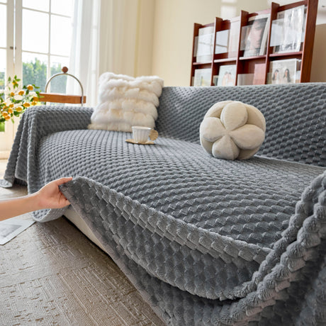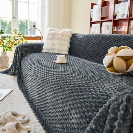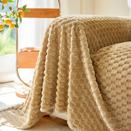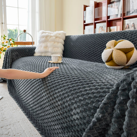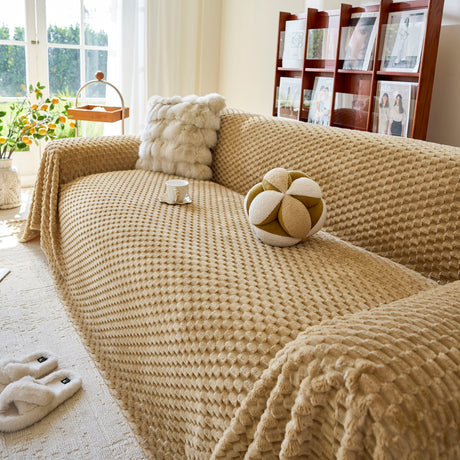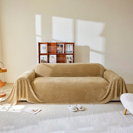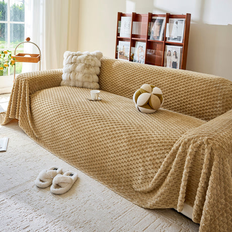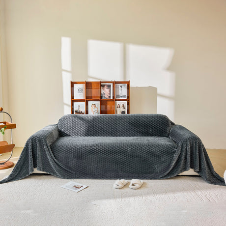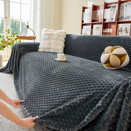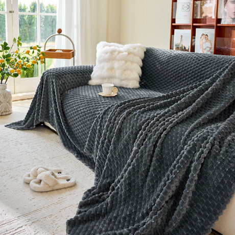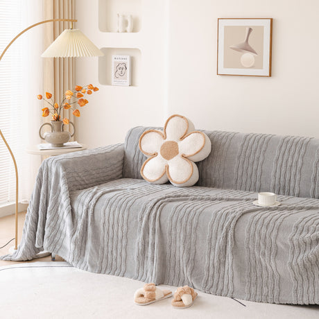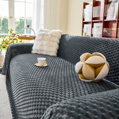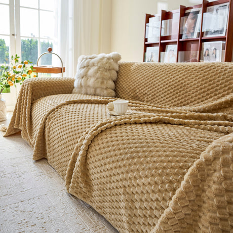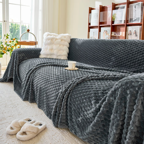 Decorative Plush Textured Woven Sofa Cover Throw, Cozy Soft Couch Protector Blanket