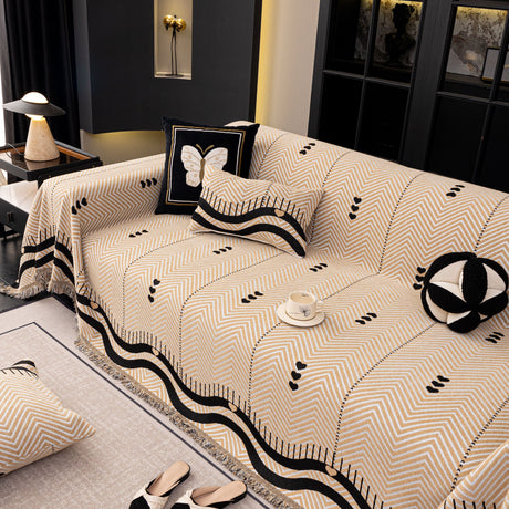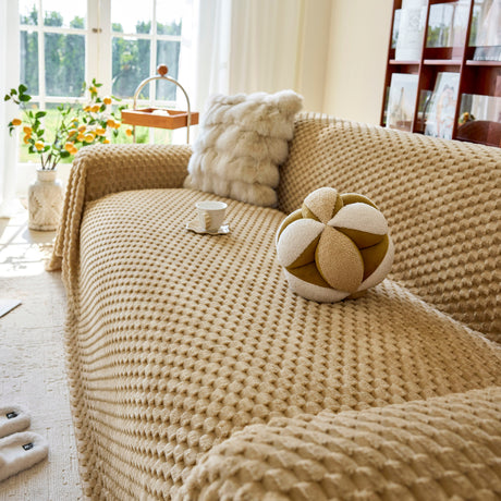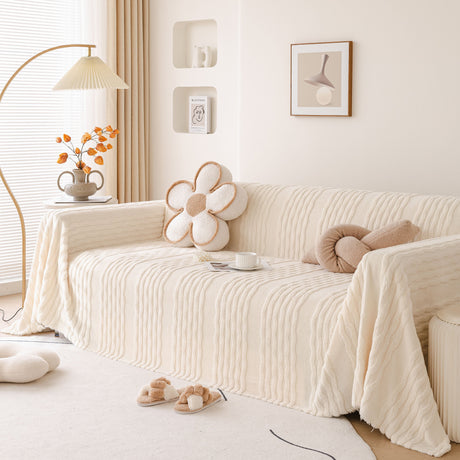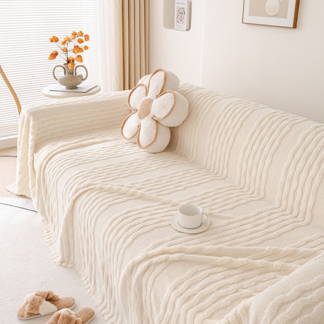 Modern 3D Water Ripple Sofa Cover, Non-Shedding Cream Style Furniture Protector Throw