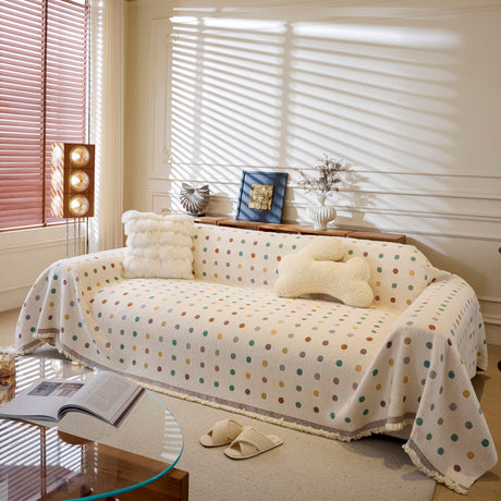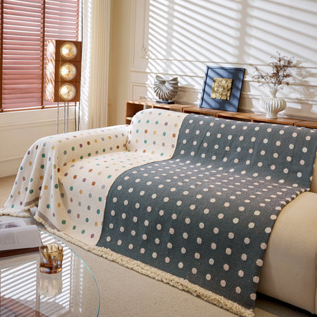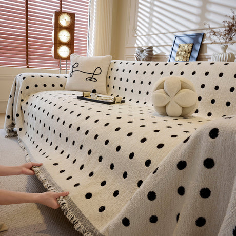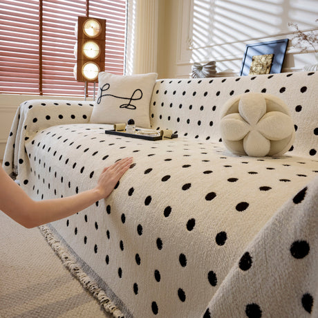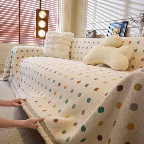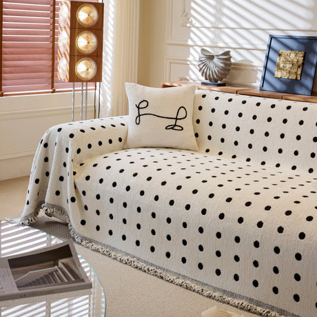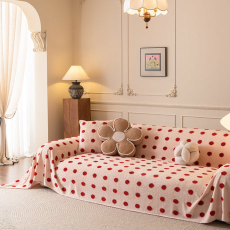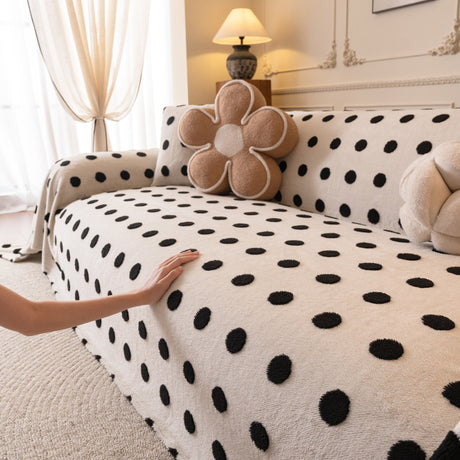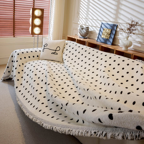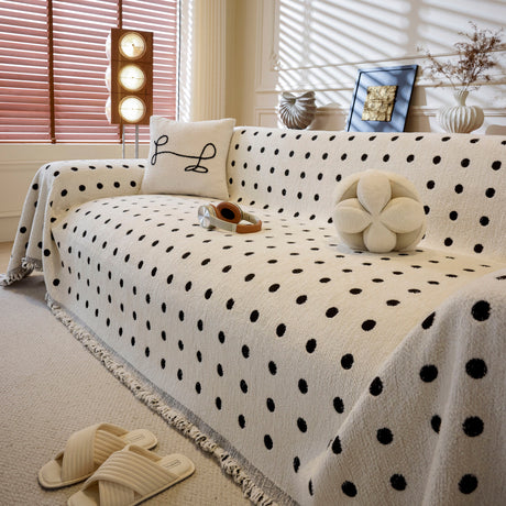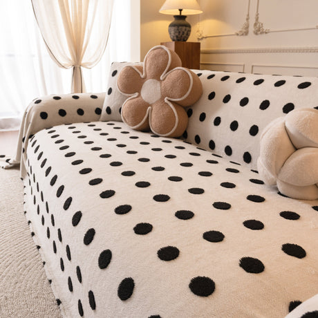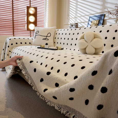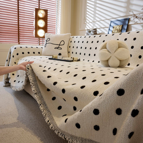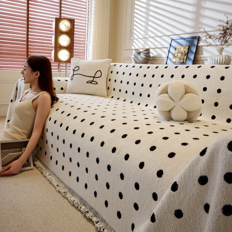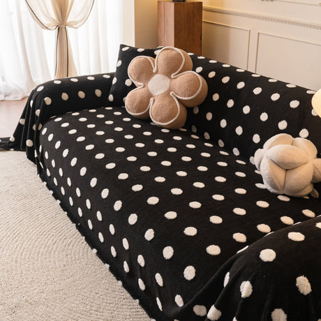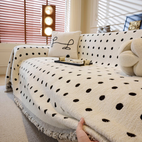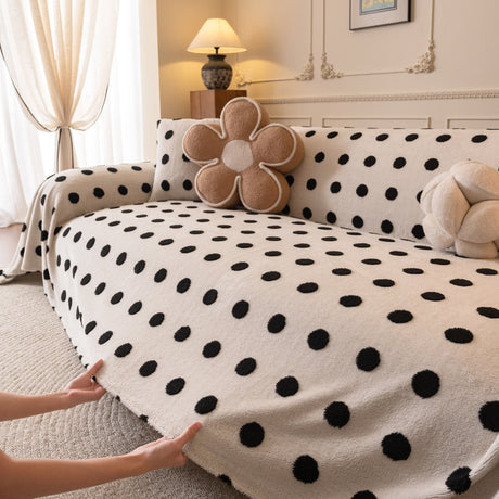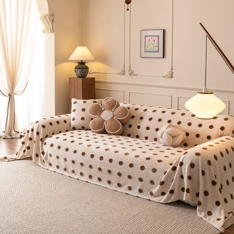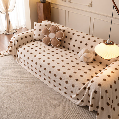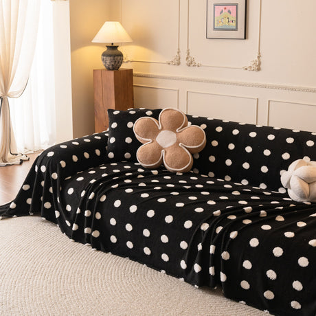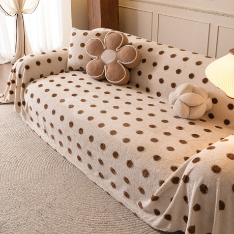 Plush Fleece Sofa Cover Throw, Soft Textured Polka Dot Couch Protector Blanket for Pets