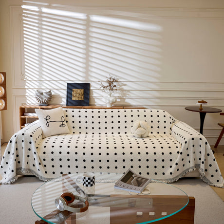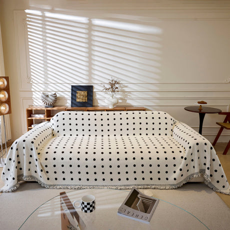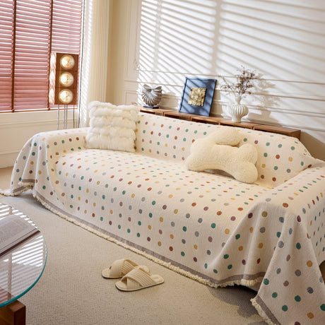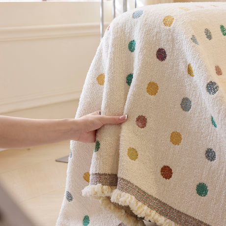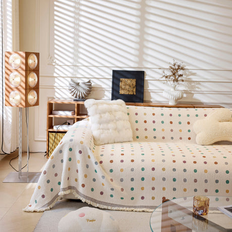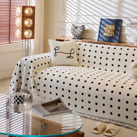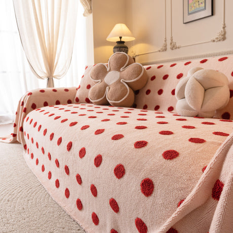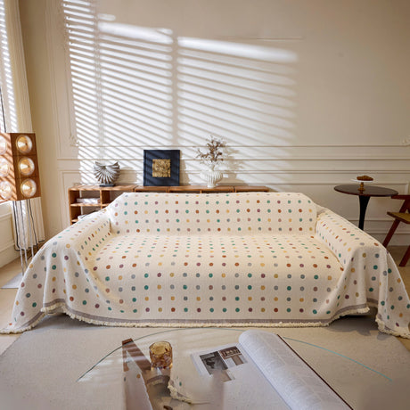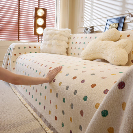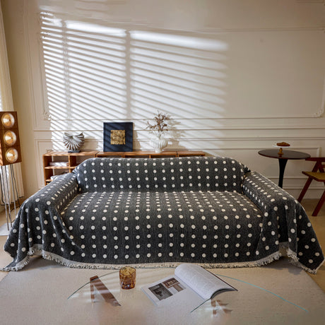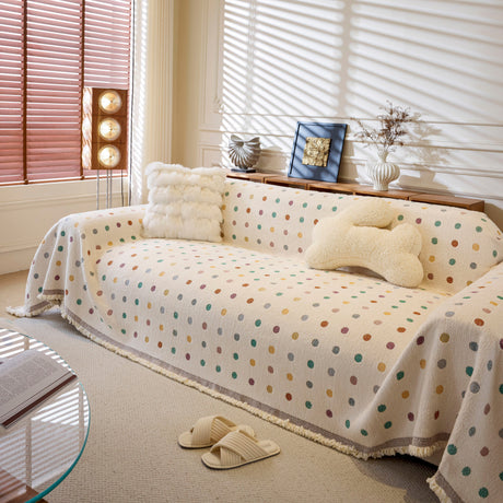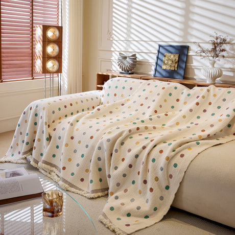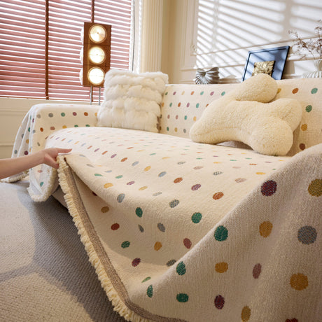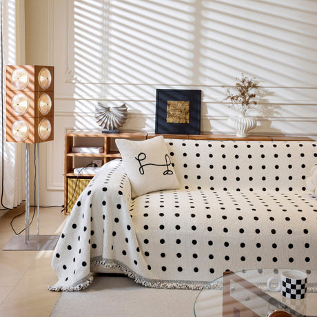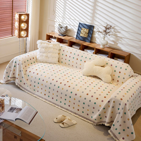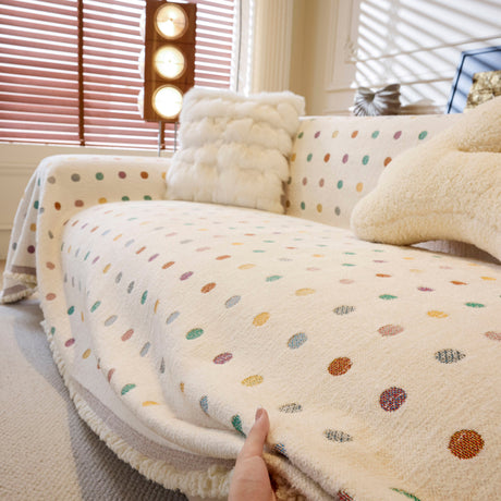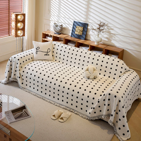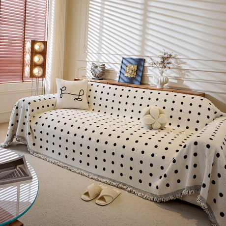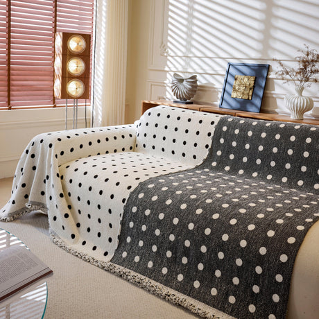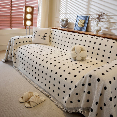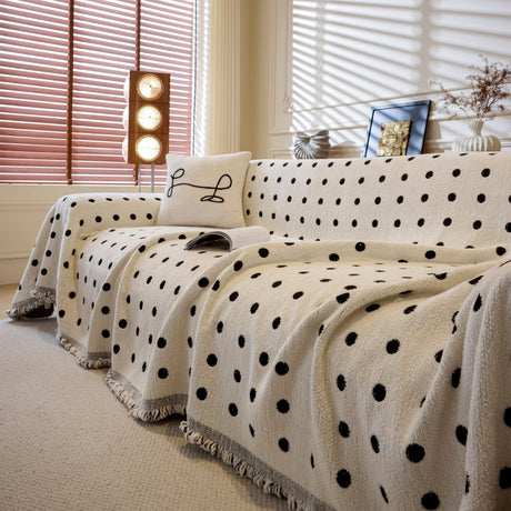 Plush Fleece Sofa Cover Throw, Soft Textured Polka Dot Couch Protector Blanket for Pets