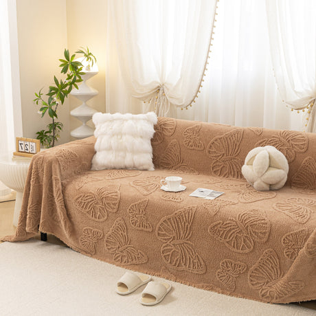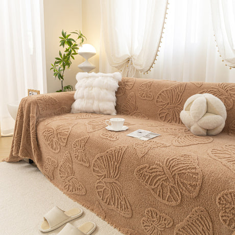 Luxury 3D Butterfly Jacquard Sofa Throw Blanket, Ultra-Soft Plush Fleece Couch Cover