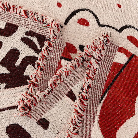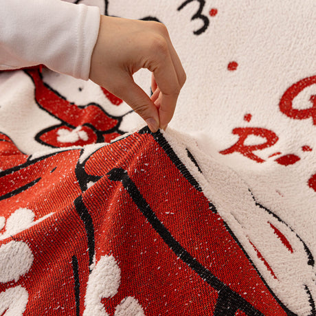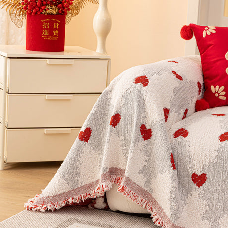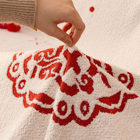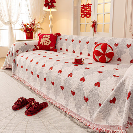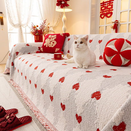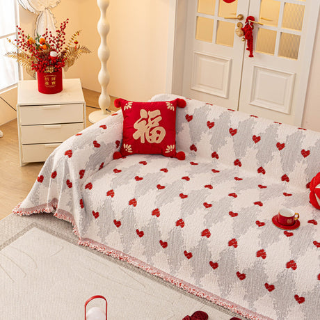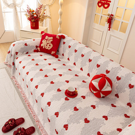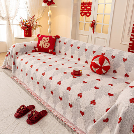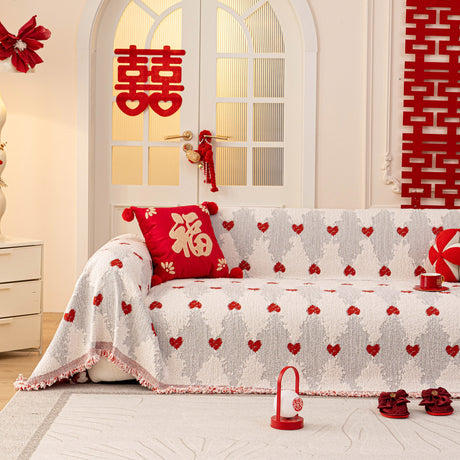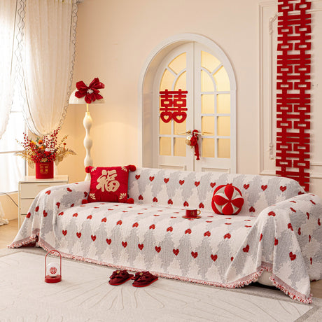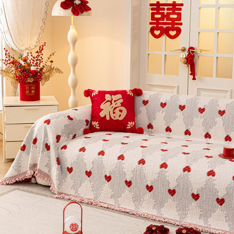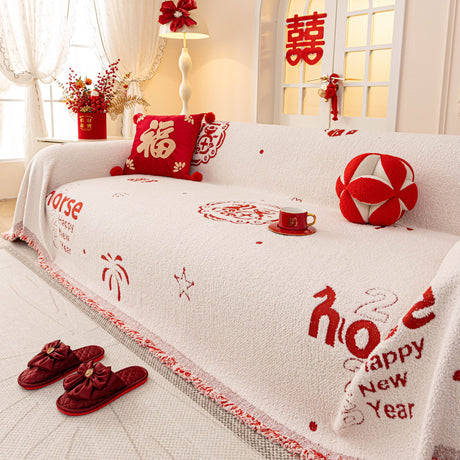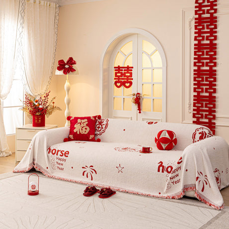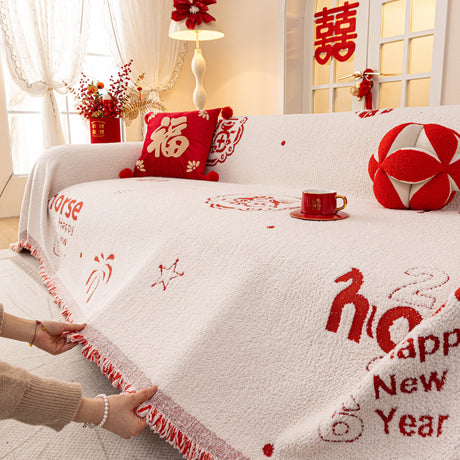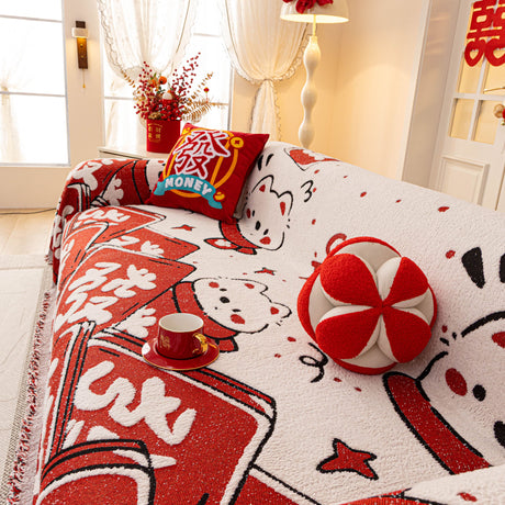 Chinese New Year Sofa Throw Cover Blanket, Decor Festive Red Fu Pattern Couch Cover