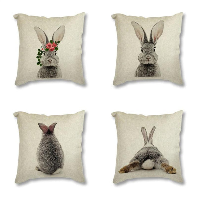 Animal Rabbit Deer Flower Crown Throw Pillow Case Cover Grey Rabbit Isolated On A White Background Bunny Tail Back Printed Decorative Linen Cotton Cushion Cover Pillow Case Nordic Cushion Cover Sofa Car Decoration 45x45CM