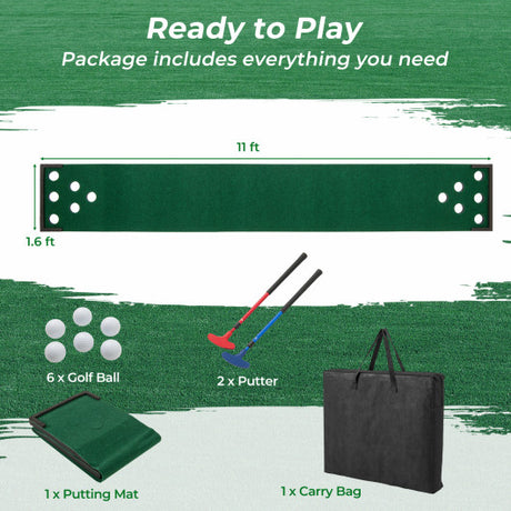 11 FT Indoor Outdoor Putting Green Mat with 2 Adjustable Putters and 6 Balls