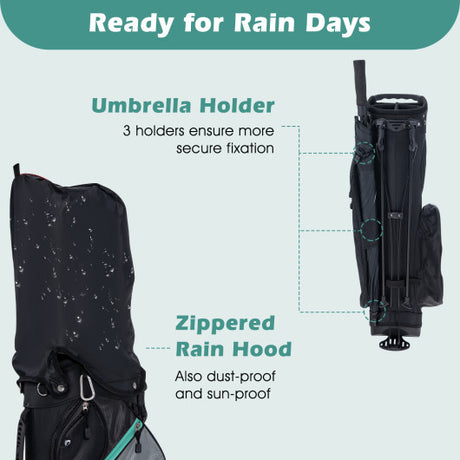 14-Way Golf Cart Stand Bag with Waterproof Rain Hood