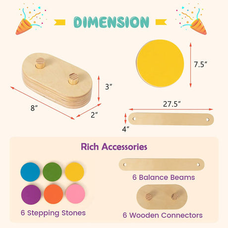 12-Piece Kids Wooden Balance Beam with Colorful Steeping Stones