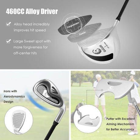 10 Pieces Men's Complete Golf Clubs Package Set with Alloy Driver