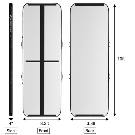 10 Feet Inflatable Gymnastics Tumbling Mat with Pump -Black