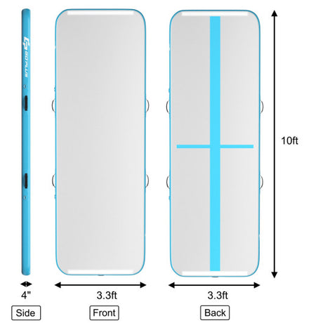 10 Feet Inflatable Gymnastic Tumbling Mat with Electric Pump-Blue