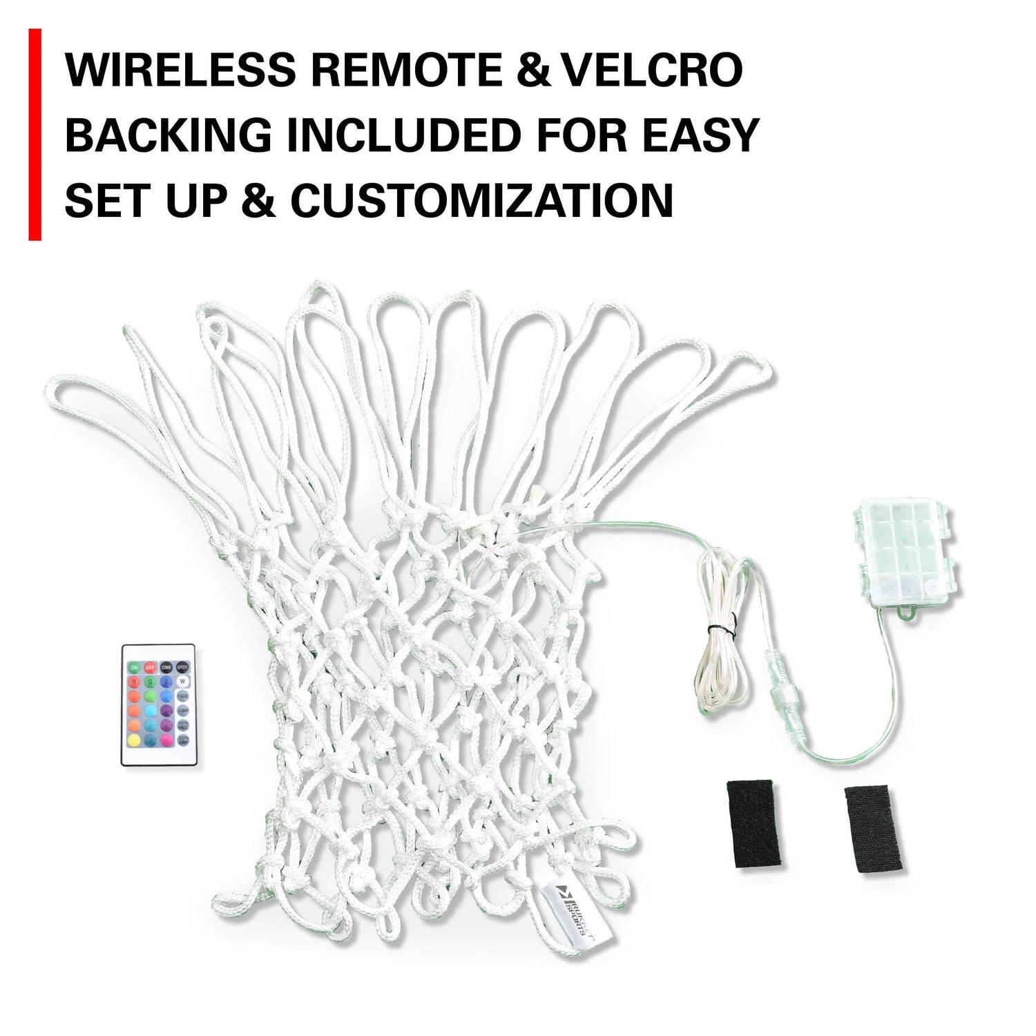 - PLAY HOOPS INTO THE NIGHT: Shooting hoops is one of the most fun activities in the world. Whether you’re practicing to get better at basketball or just getting a little exercise. Play basketball into the night with the Rukket Light Up Net! This product includes (1) LED Rukket Basketball Net, (1) Wireless Remote & (1) Power supply case.This product is discounted for a limited time - add to cart now!