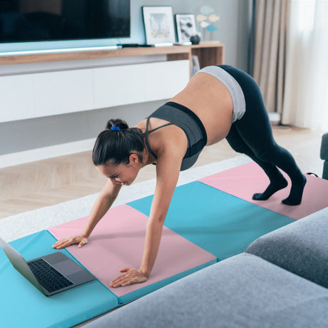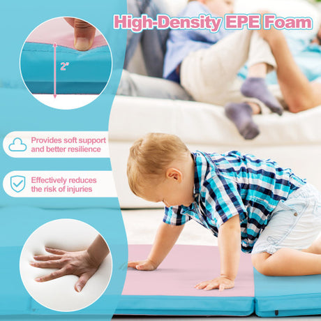Folding Gymnastics Mat with Carry Handles and Sweatproof Detachable PU Leather Cover-Pink