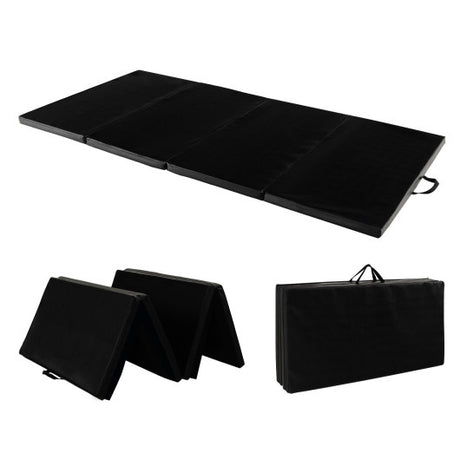 Folding Gymnastics Mat with Carry Handles and Sweatproof Detachable PU Leather Cover-Black