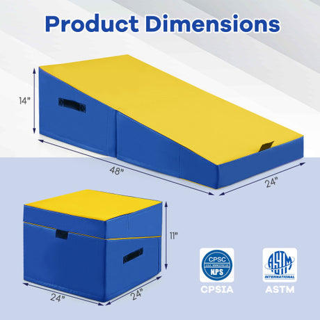 Gymnastics Vaulting Box with Detachable Mat Carrying Handle for Kids-Blue