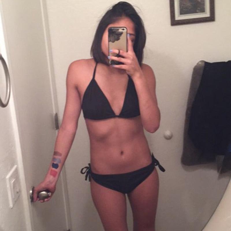 Women Push Up Bandage Bikini Set Swimsuit Bathing Suit Swimwear Beachwear Women's Tie Side Bottom Padded Top Triangle Bikini Bathing Suit - Black is backordered and will ship as soon as it is back in stock.
