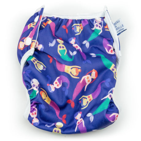 Toddler Size Mermaids Reusable Swim Diaper, Adjustable 2-5 Years by Beau & Belle Littles
