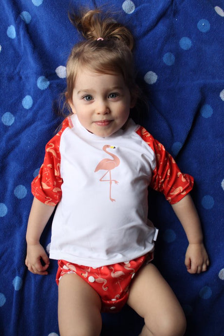 Regular price $11.99Unit price /UnavailableIn stock Flamingo Baby Rash Guard, Sun Protective Swim Shirt (Sizes 6M–5T) by Beau & Belle Littles