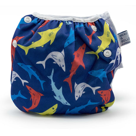 Sharks Nageuret Reusable Swim Diaper, Adjustable 0-3 Years or 2-5 Years by Beau & Belle Littles