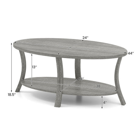 Oval Coffee Table 2-Tier Center Table with Storage Shelf-Gray