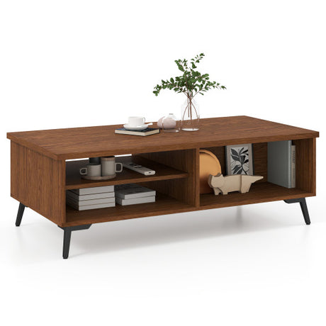 2-Tier Mid Century Modern Coffee Table with Storage Shelves Compartments-Walnut