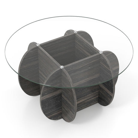 Round Glass Coffee Table 32 Inch Modern Center Table with Tempered Glass Top-Gray