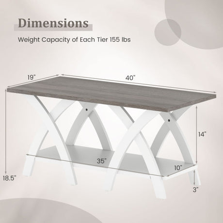 40 Inch Farmhouse Wooden Coffee Table with Storage Shelf with X-shaped Legs-Gray