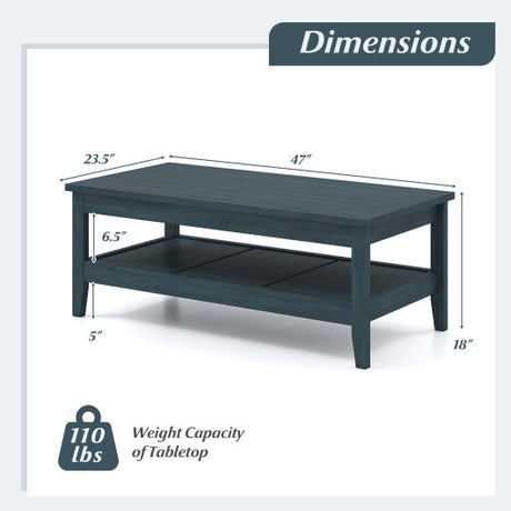 2-Tier Mid Century Modern Coffee Table with Storage Shelves Compartments-Blue