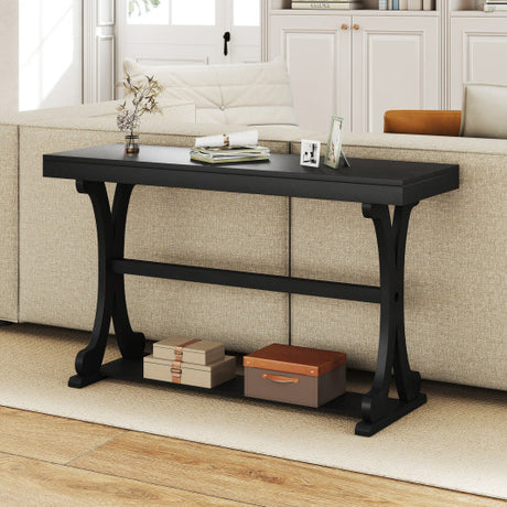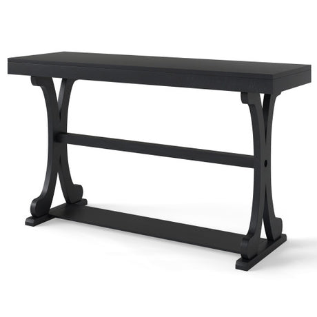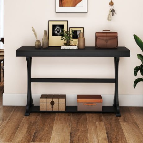 Narrow Console Table Vintage 52 Inch Long with Open Storage Shelf-Black