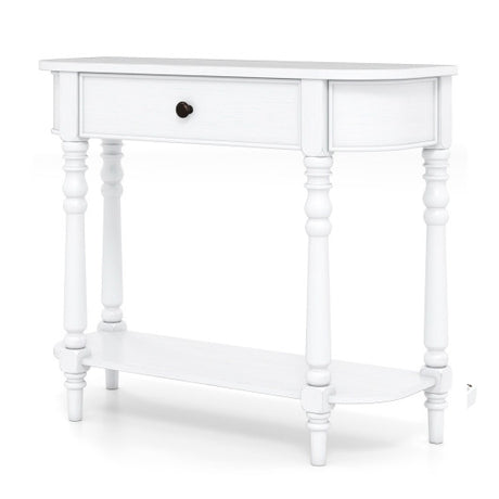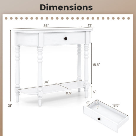 Retro Console Table 36"L Wooden 2-Tier Narrow Behind Couch Foyer Table-White