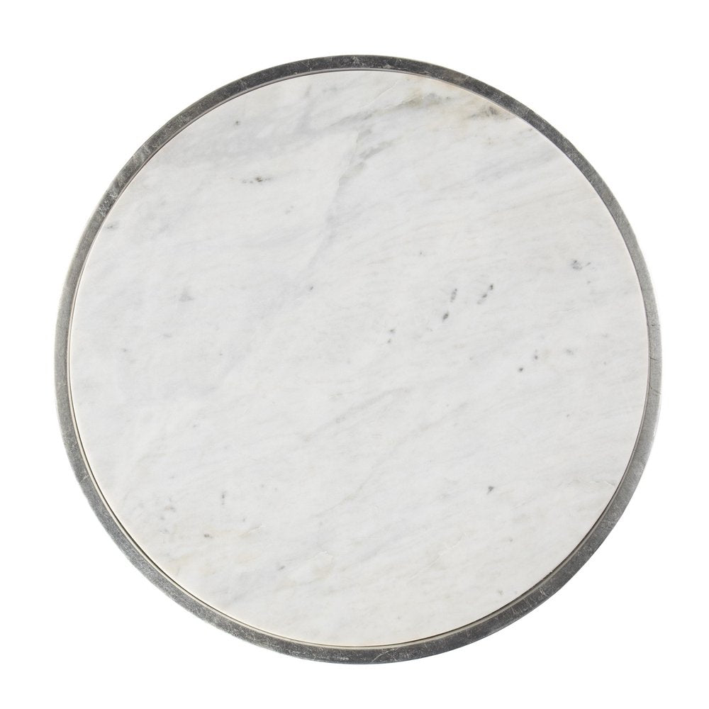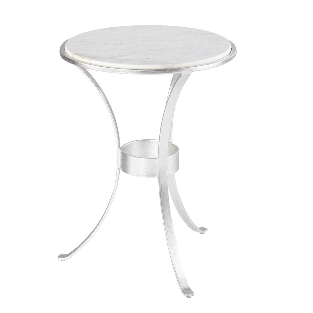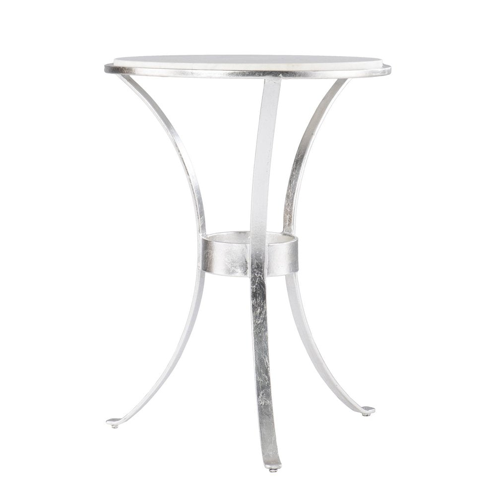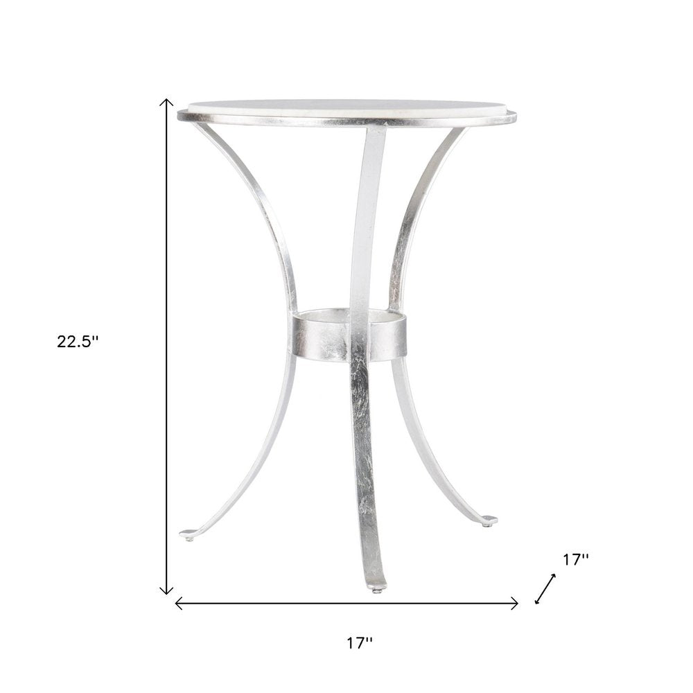 23" Silver And White Marble Curvy Leg Round End Table is backordered and will ship as soon as it is back in stock.