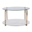 33" Gold Glam Glass And Faux Marble Two Tier Round Coffee Table