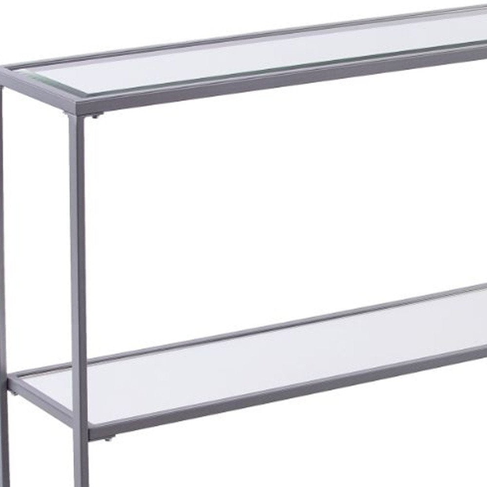 Keywords glass sled console table shelves, sled console table shelves, silver glass sled console table, glass sled console table, console table shelves