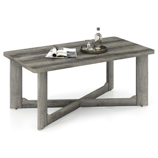 Rectangle Coffee Table Rubber Wood Base with X-Shaped Base-Gray