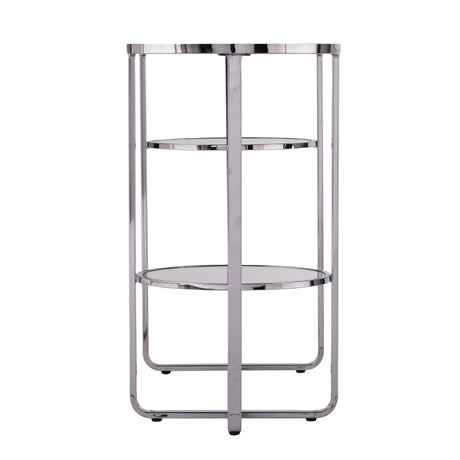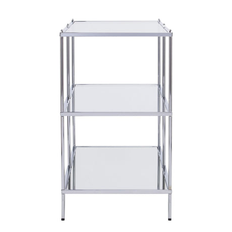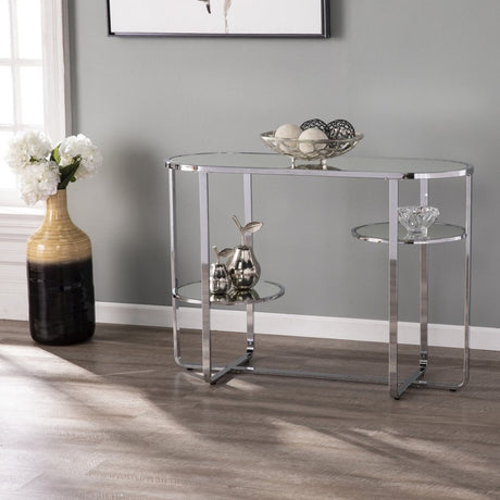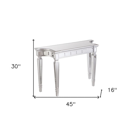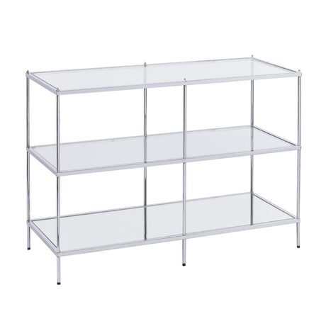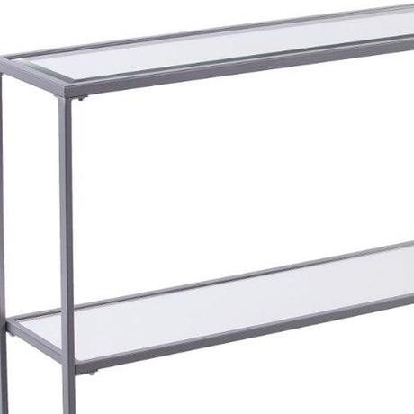 42" Clear and Silver Glass Mirrored Frame Console Table With Shelves