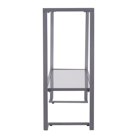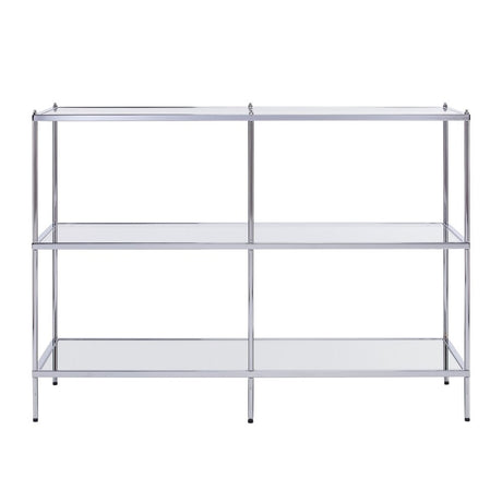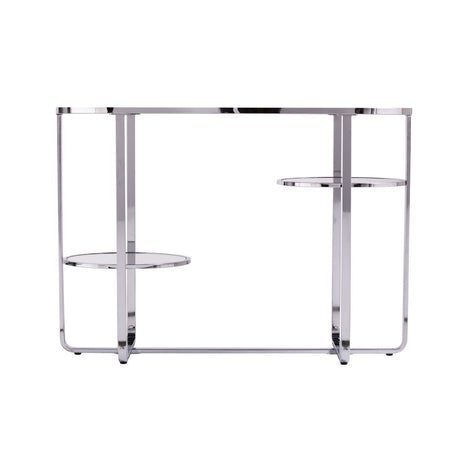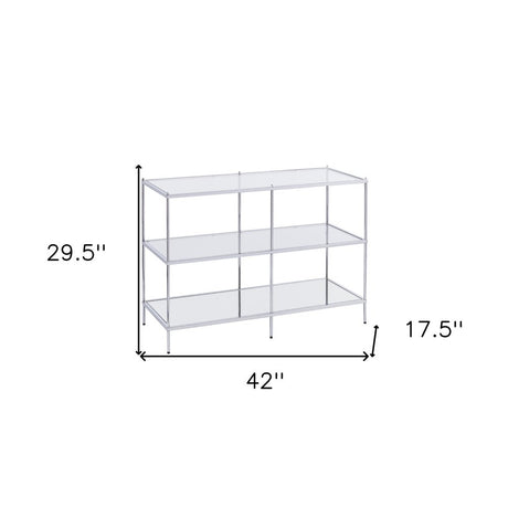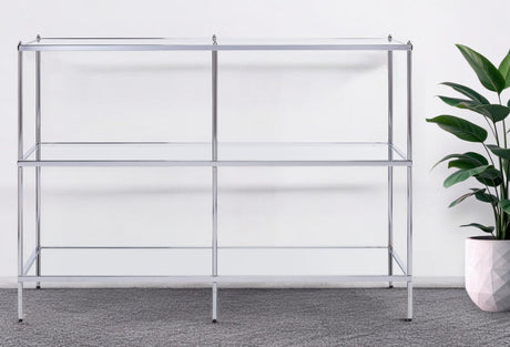 52" Clear and Silver Glass Sled Console Table With Shelves