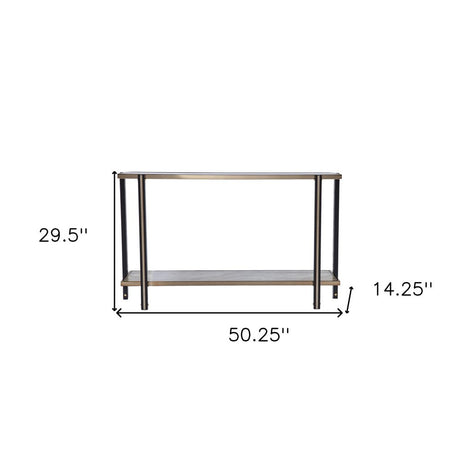 Regular price $365.90Unit price /UnavailableIn stock47" White Brass and Brown Faux Marble Console Table With Shelf