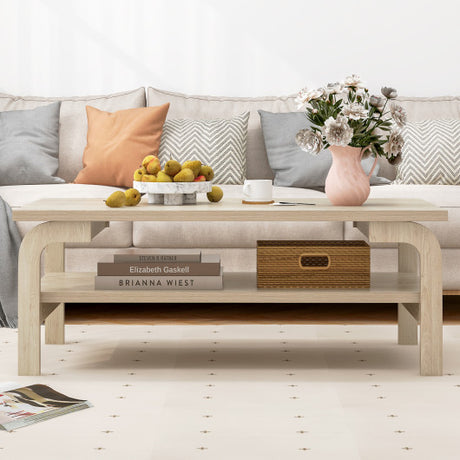 Large 36/41 Inch 2-tier Wooden Modern Coffee Table with Storage Shelf-Coffee