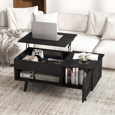 Lift Top Coffee Table with Storage and Hidden Compartment-Black