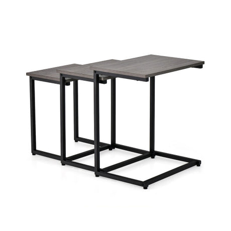 Set of Two 33" Taupe And Black Triangle Nested Coffee Tables
