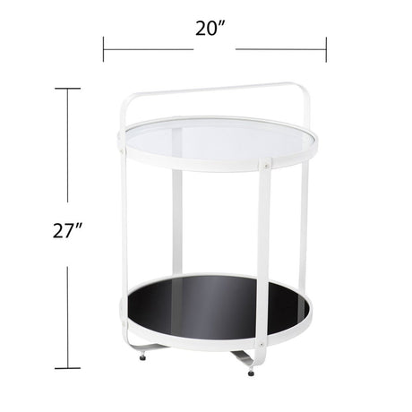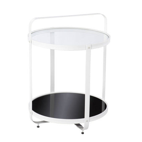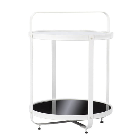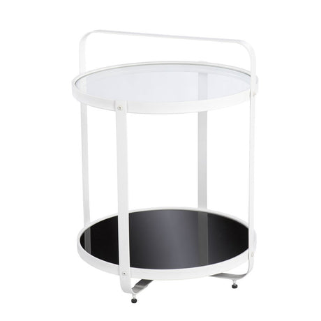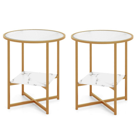 2-Tier Glass End Table Set of 2 with Faux Marble Storage Shelf-White